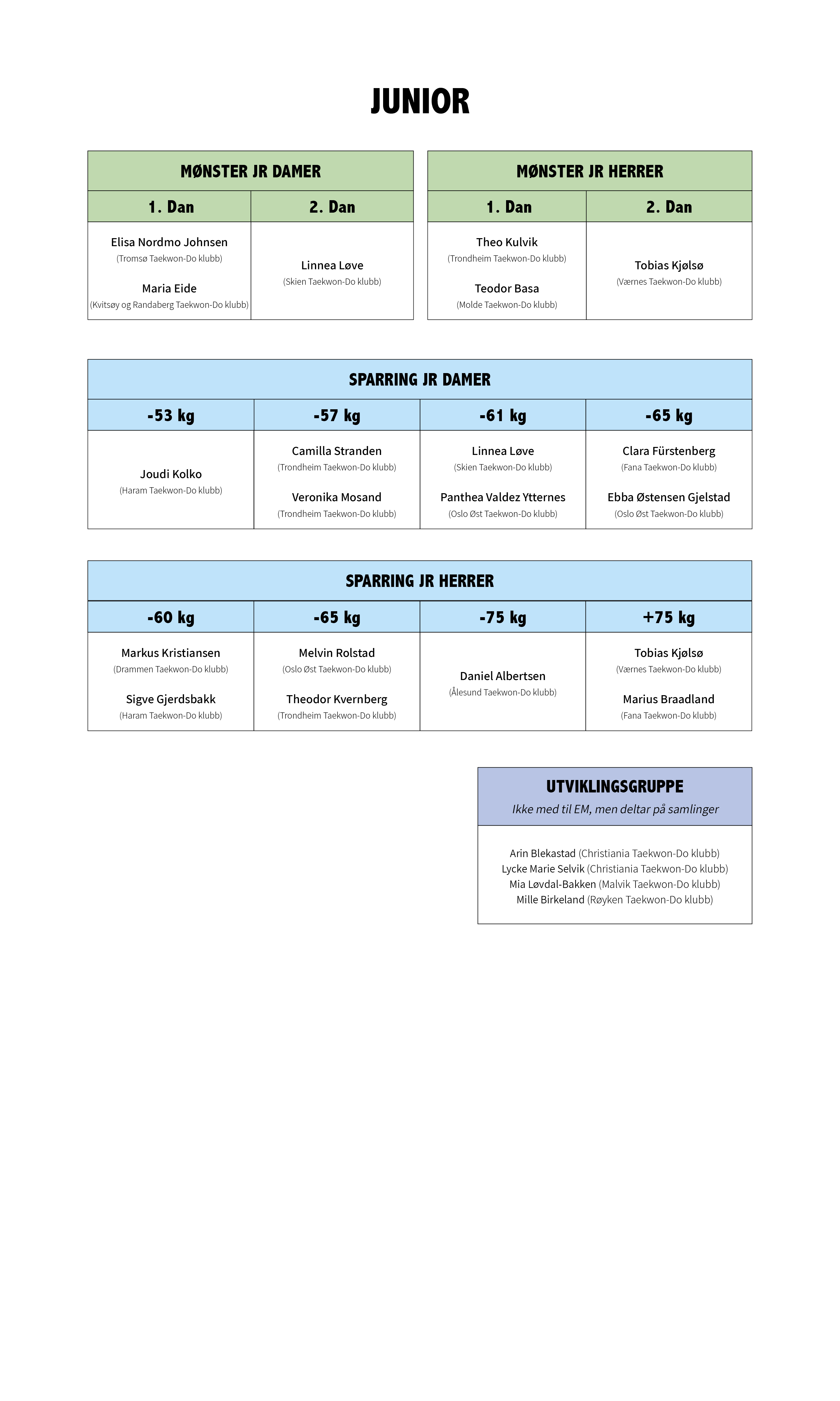 Medlemsinfo Filer Gradering Sortbeltesøknad Praksisrapport Landslag Lover og regler NTNs instruktørkurs Terminliste Undervisningsmateriell Landslag LANDSLAGET 2026